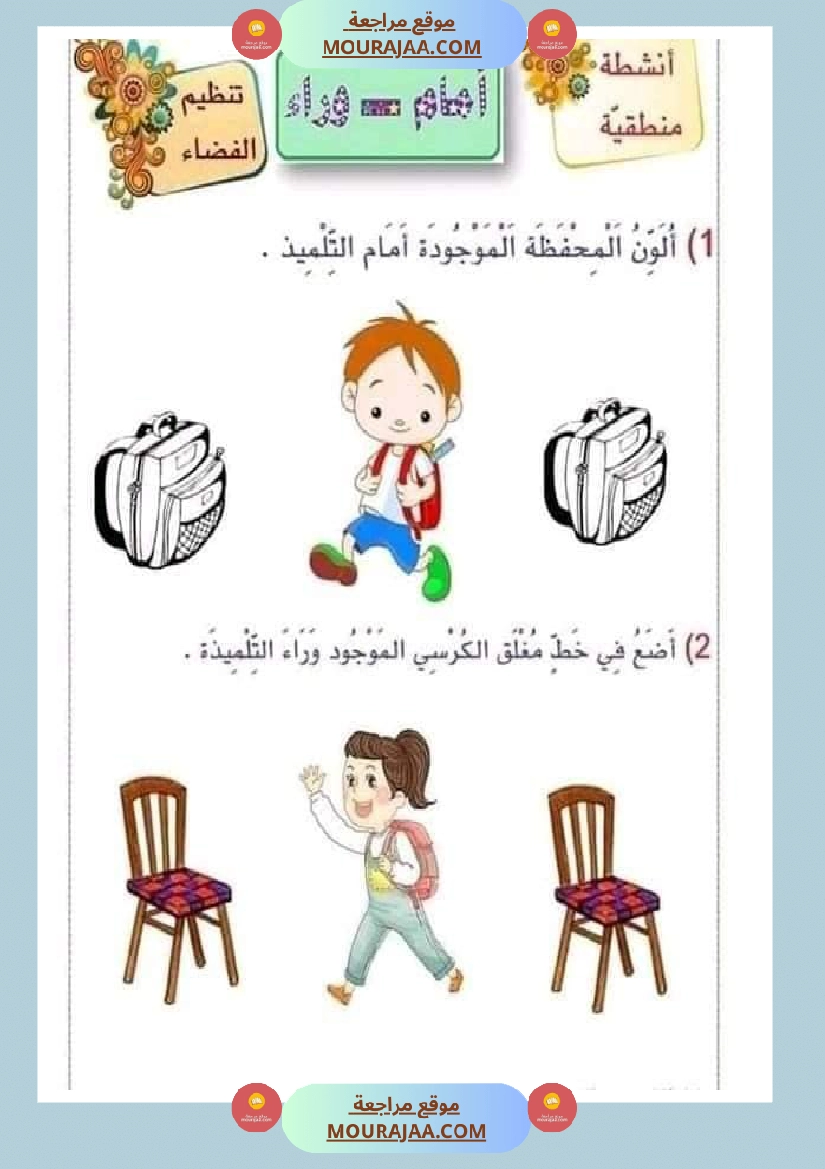 📚 هذا الدرس مخصص لتلاميذ التعليم الابتدائي لمساعدتهم على فهم درس تنظيم الفضاء سنة الاولى في مادة رياضيات بطريقة سهلة ومنظمة.