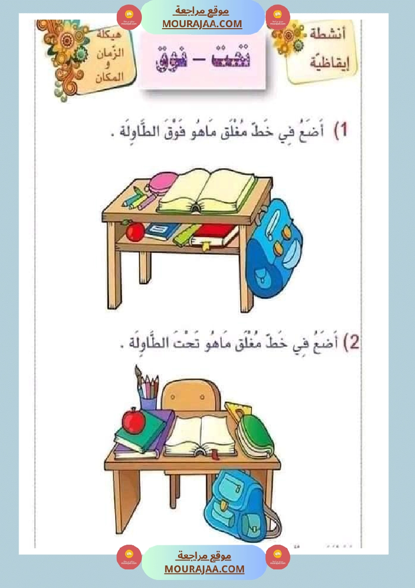 درس تنظيم الفضاء سنة الاولى سنة أولى ابتدائي ابتدائي pdf