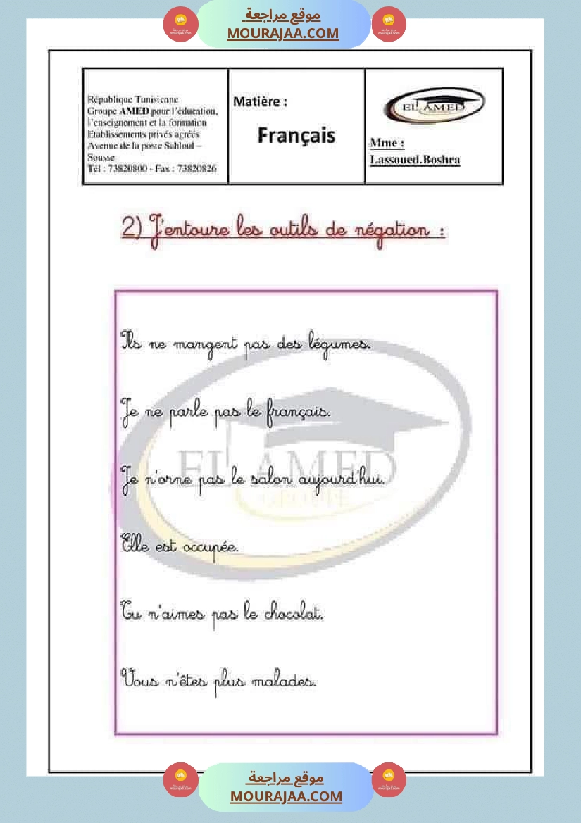 كل الموارد و المراجع الموجودة في موقع مراجعة هي تابعة للنظام التعليمي التونسي و مناهجه