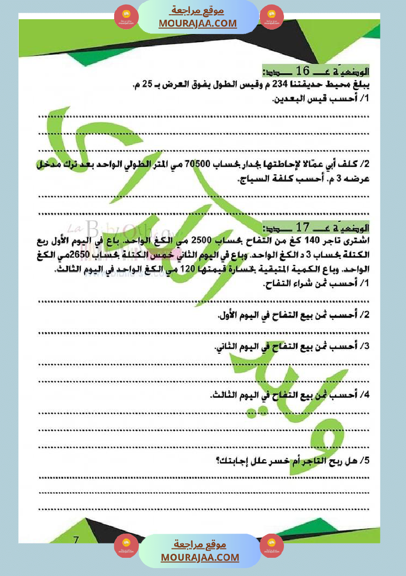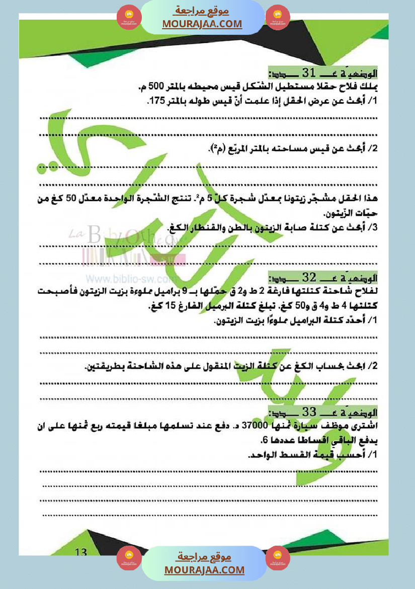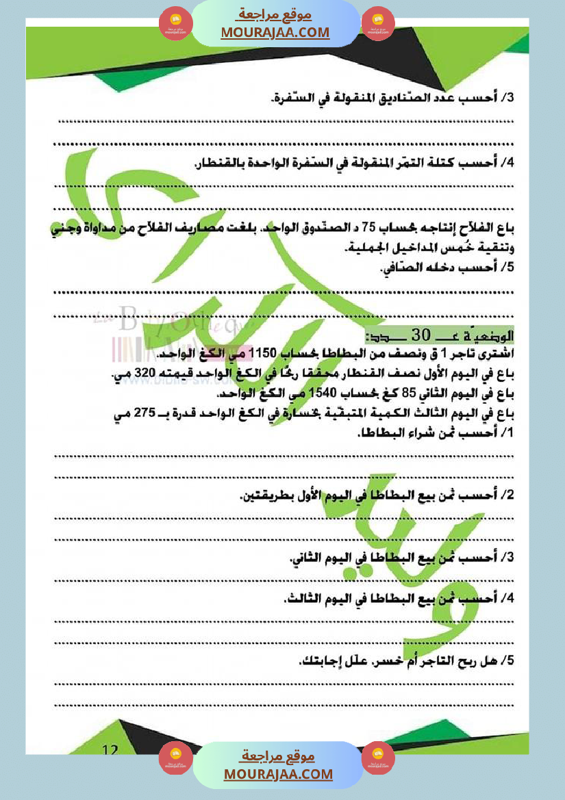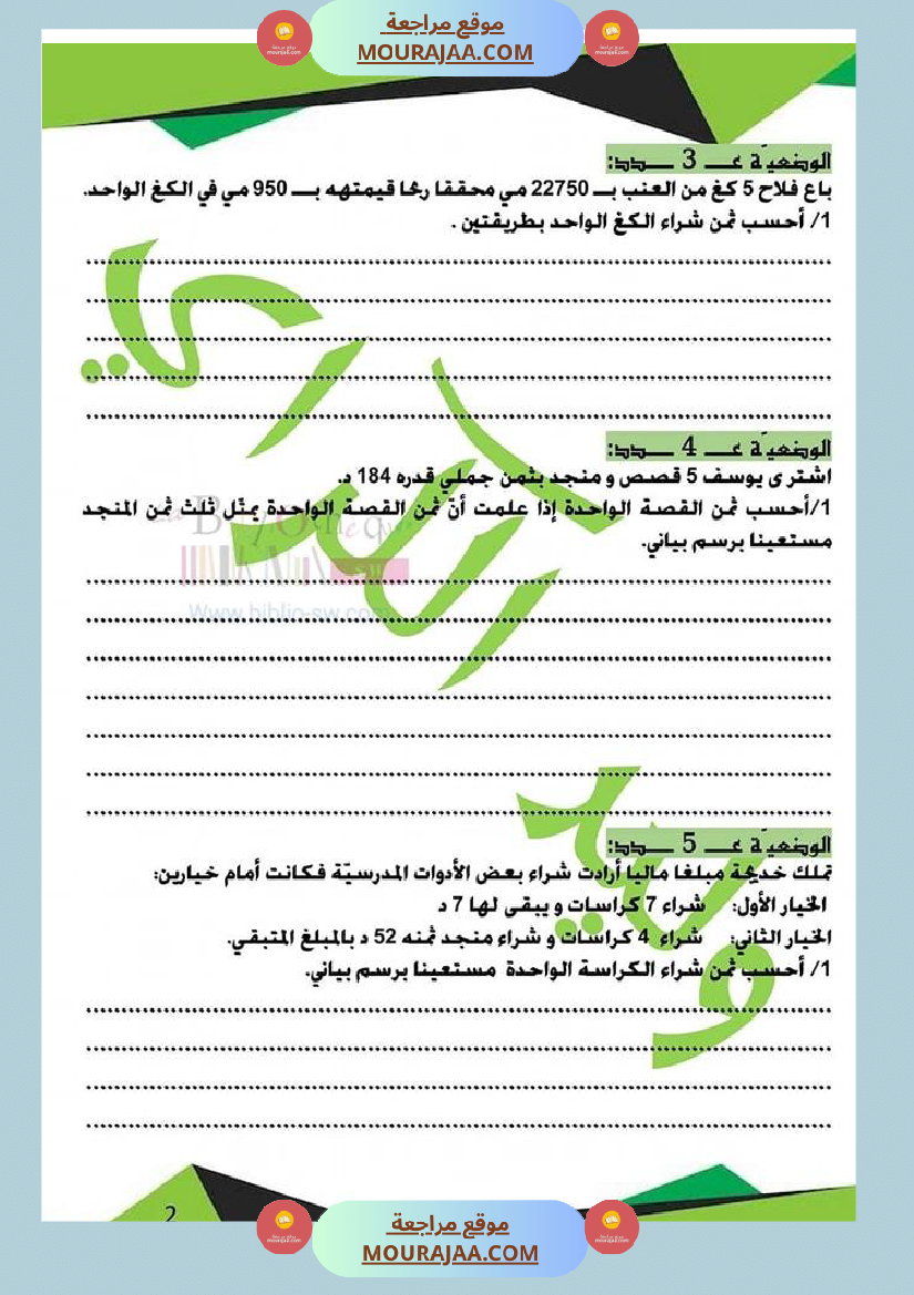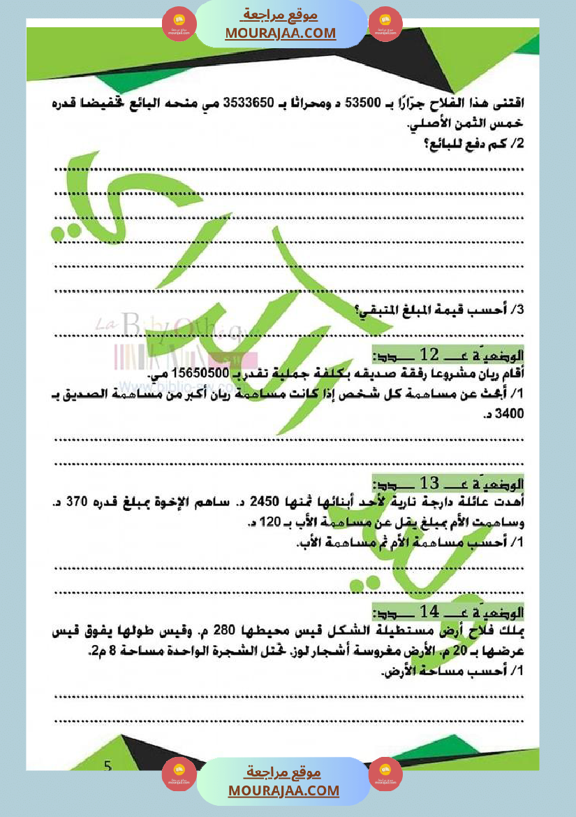 كراس الرياضيات سنة خامسة