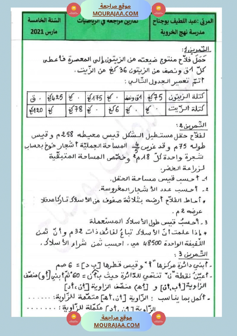 • مناسب لتلاميذ سنة خامسة ابتدائي