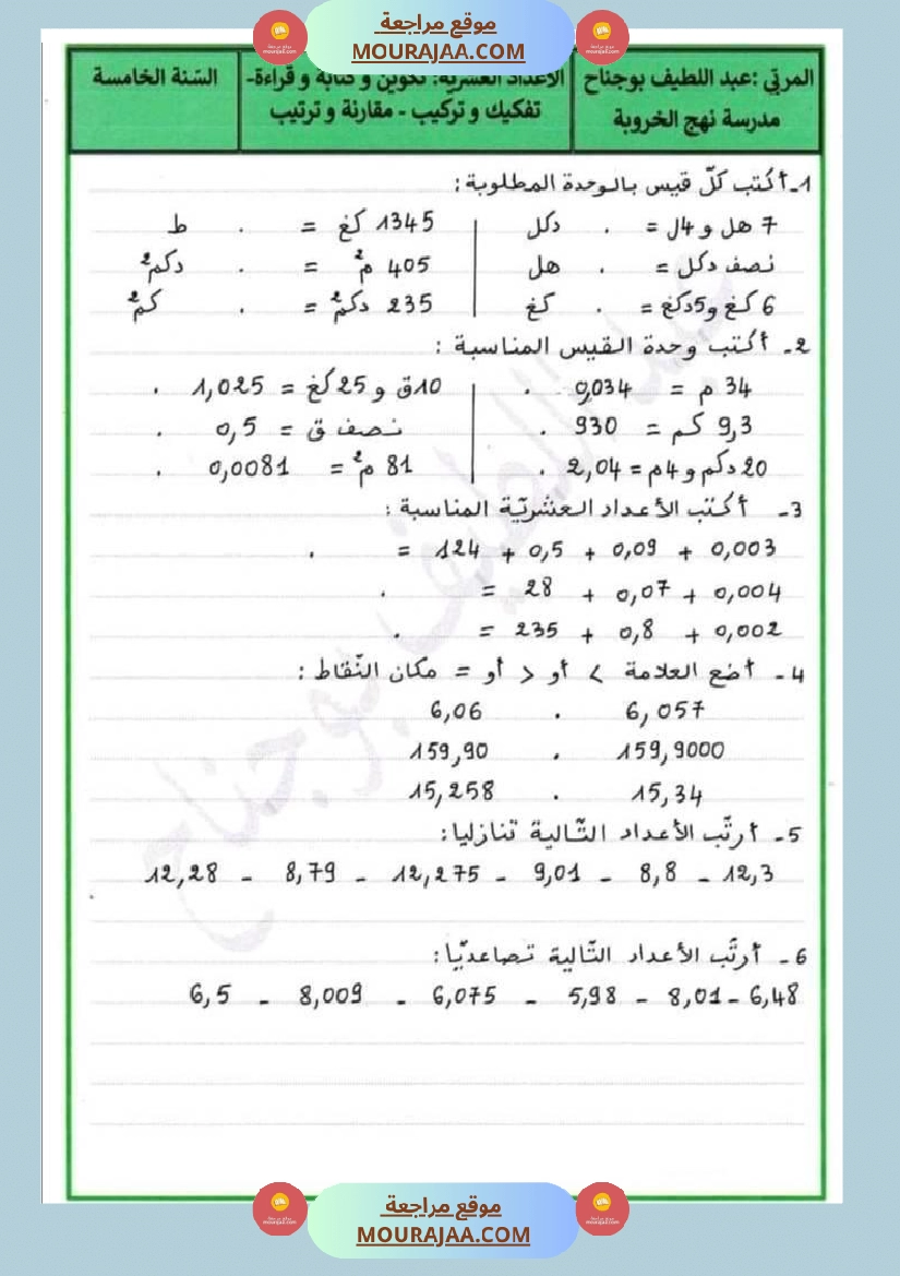 ???? هذا الدرس مخصص لتلاميذ التعليم الابتدائي لمساعدتهم على فهم درس السنة الخامسة في مادة رياضيات بطريقة سهلة ومنظمة.