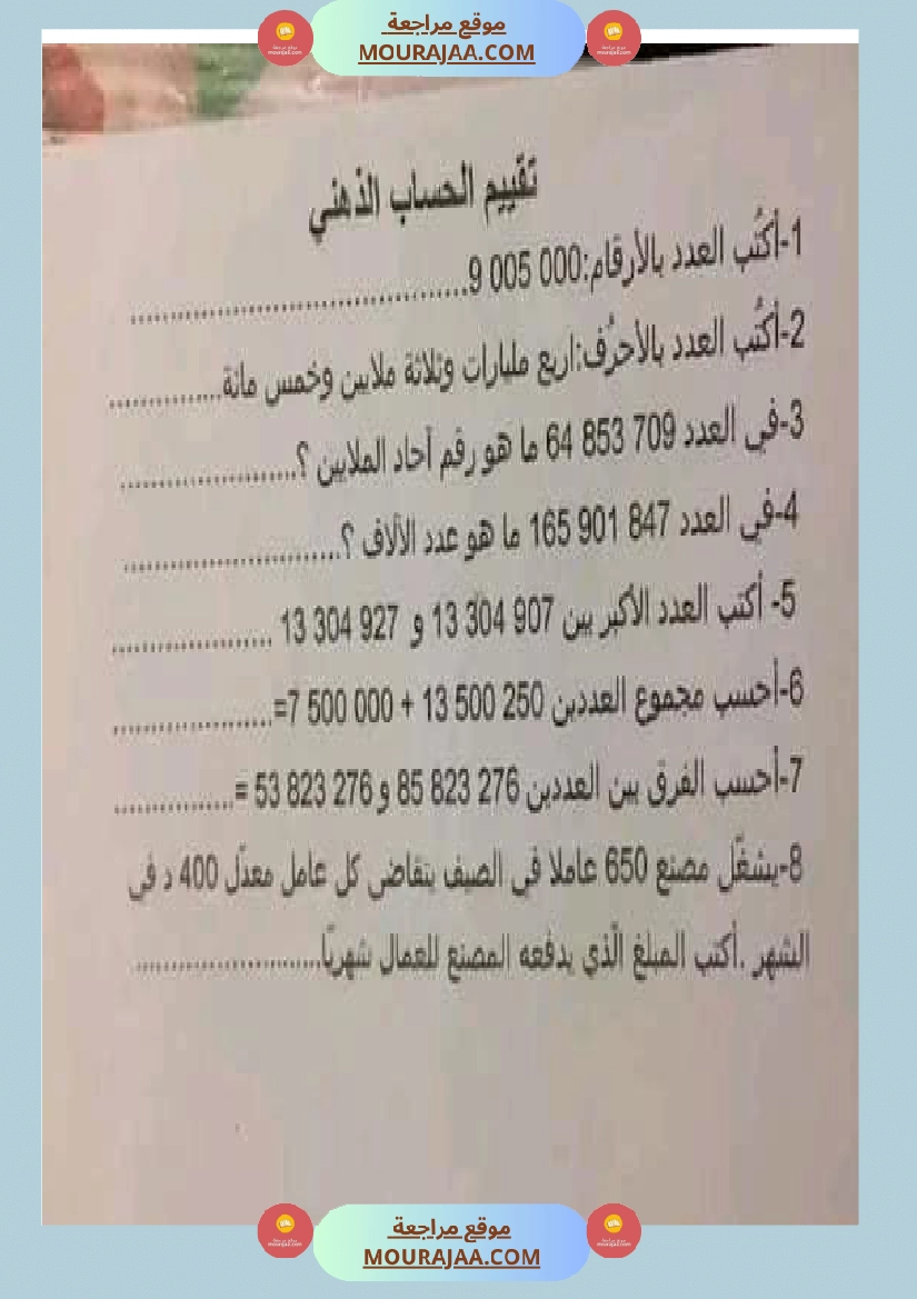 حساب ذهني سنة خامسة