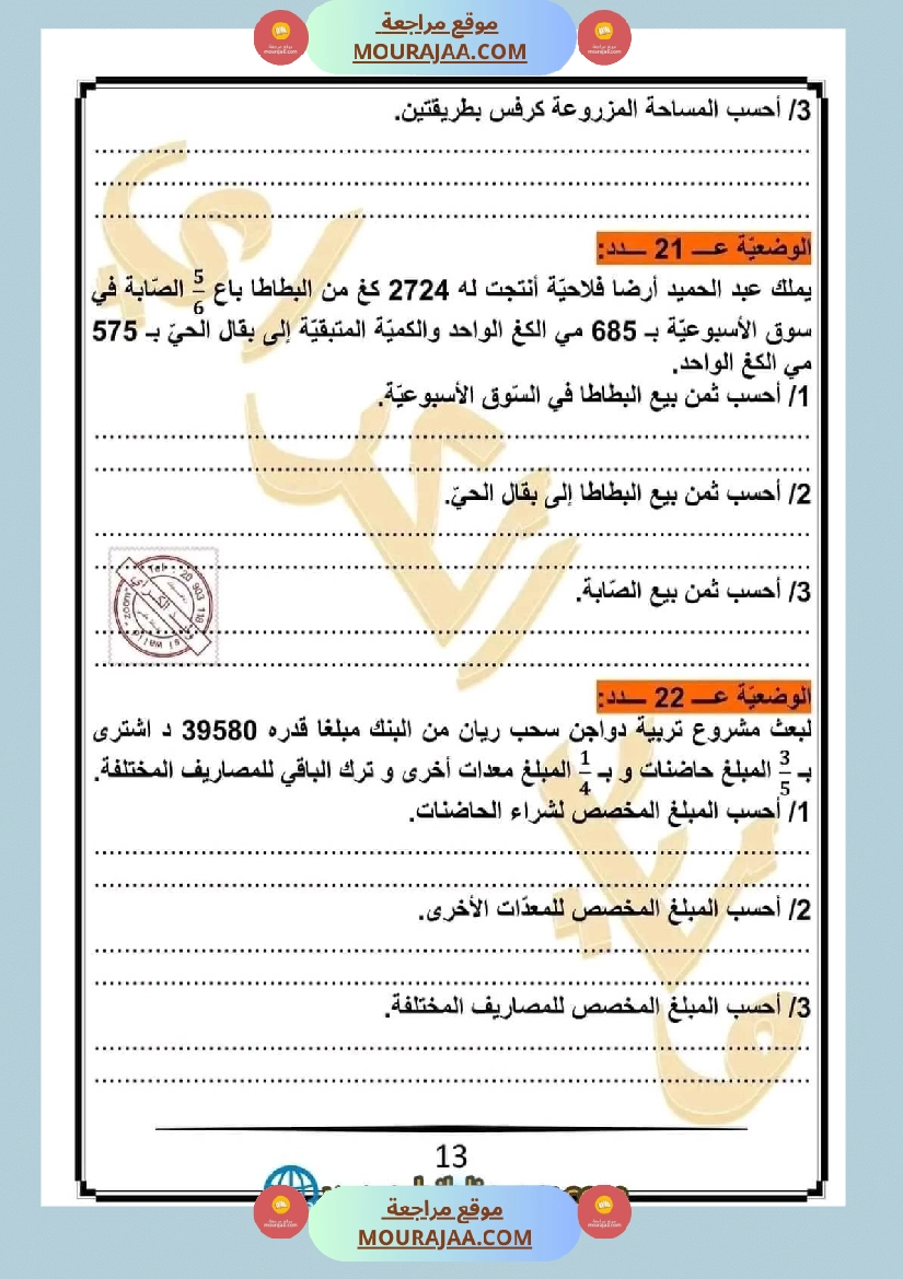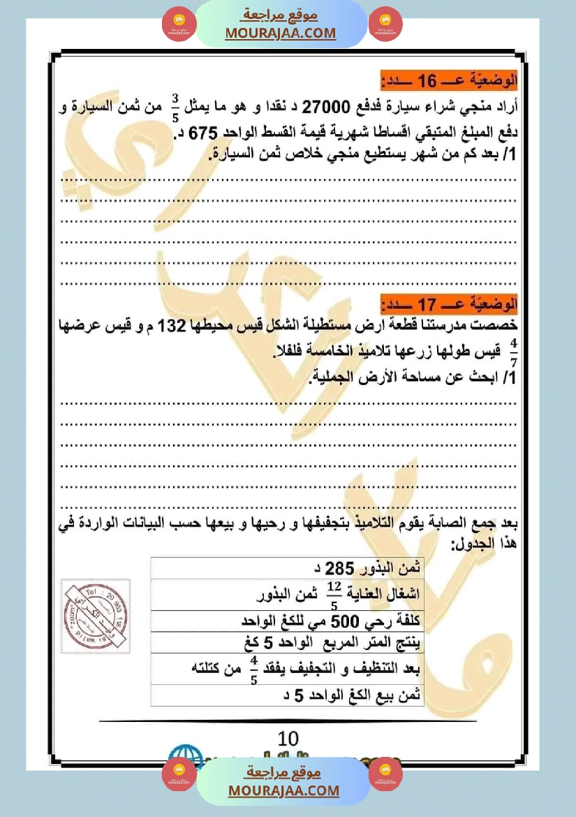 • مناسب لتلاميذ سنة خامسة ابتدائي