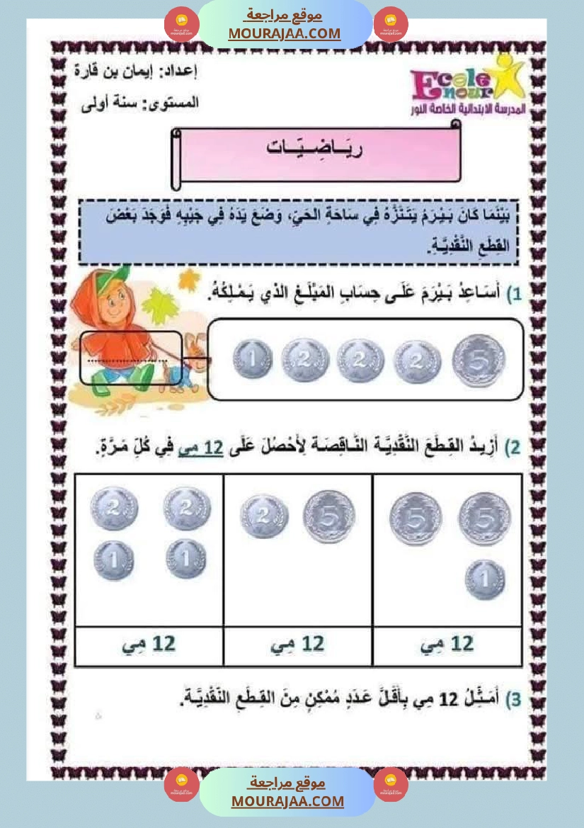 📚 المستوى: سنة أولى ابتدائي