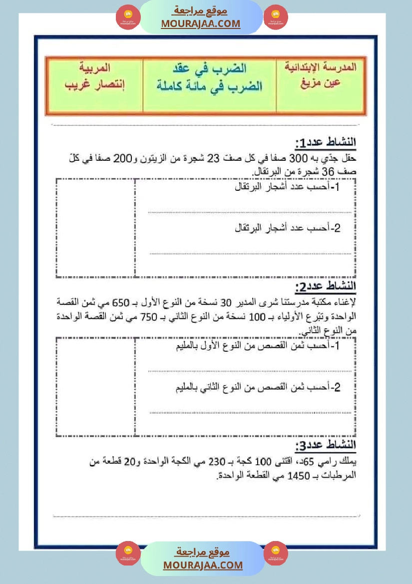 درس سنة رابعة رياضيات سنة رابعة ابتدائي ابتدائي pdf