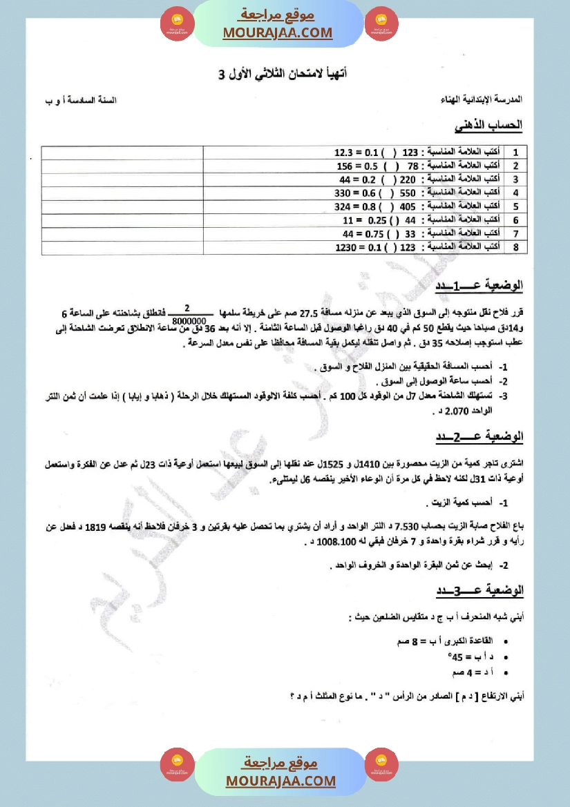 درس سنة سادسة رياضيات سنة سادسة ابتدائي ابتدائي pdf