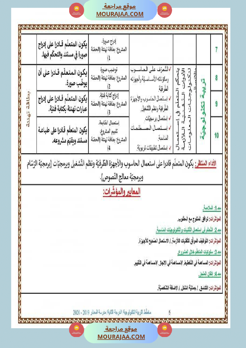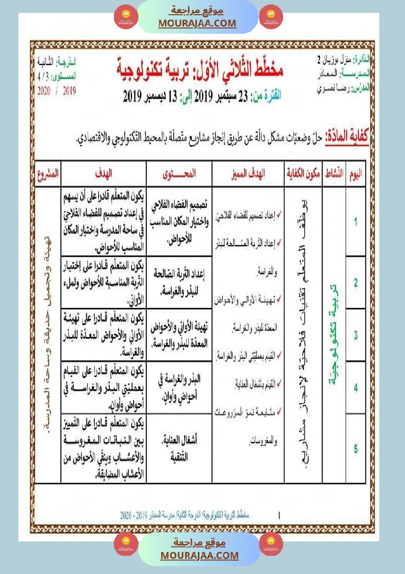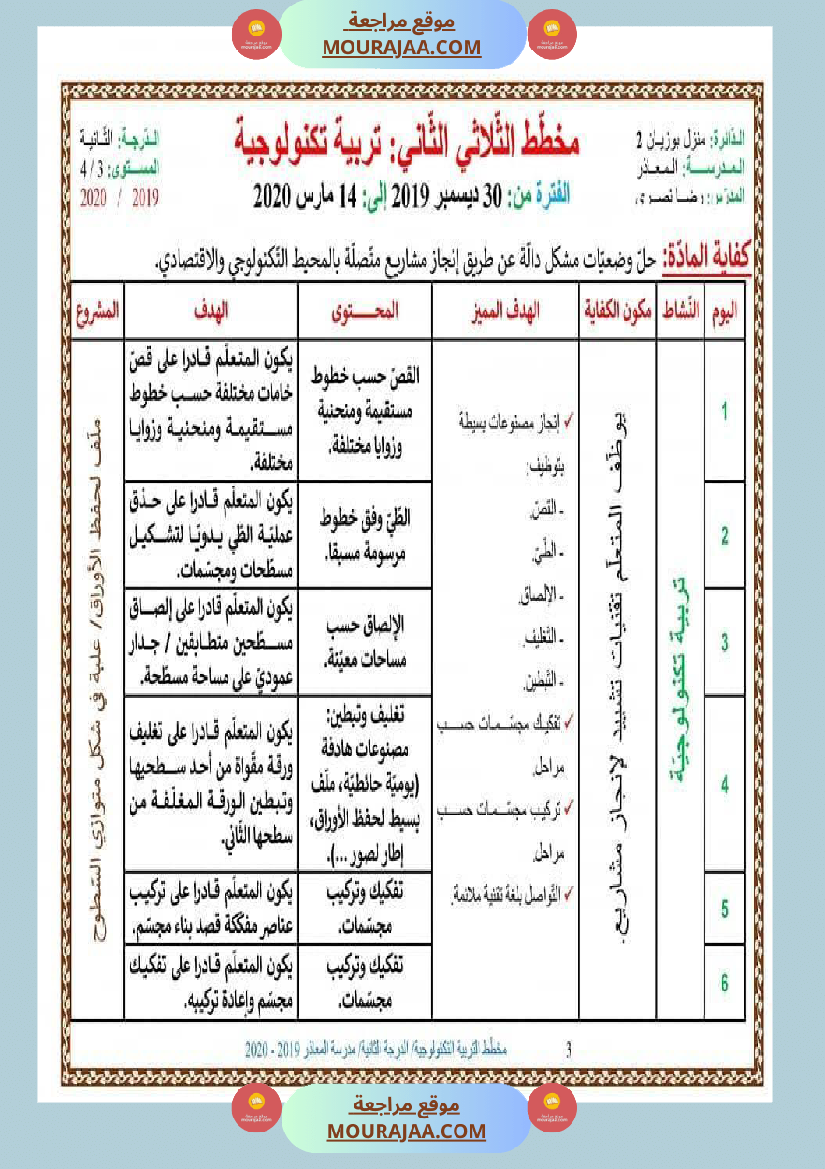 مخطط التربية التكنولوجية الدرجة الثانية