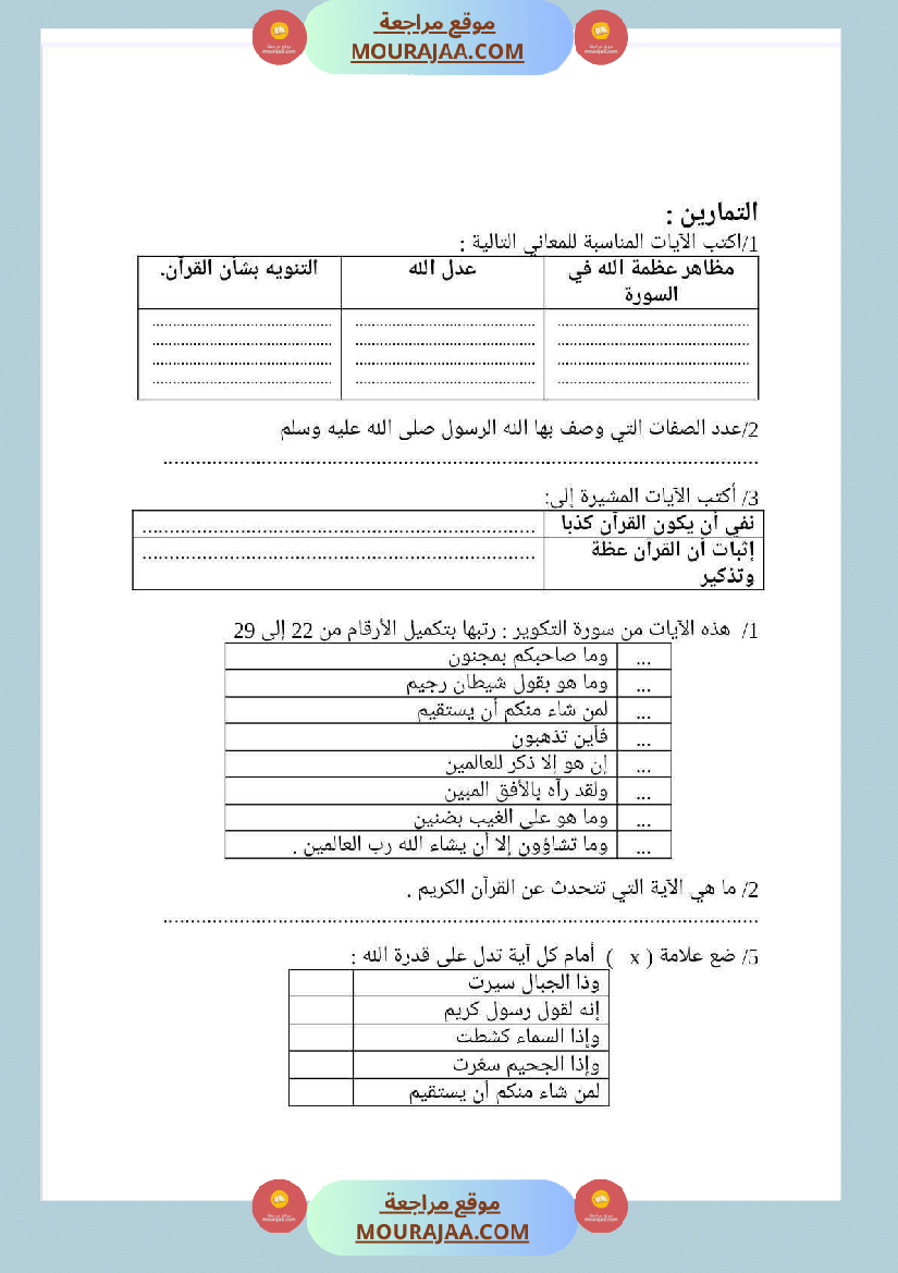مذكرات التربية الإسلامية السنة السادسة
