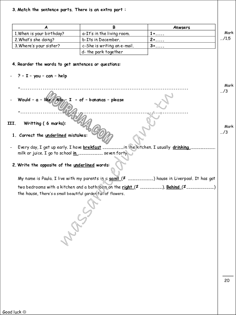 📚 Cet examen est destiné aux élèves de sixieme en Tunisie pour les aider à évaluer leur niveau en anglais et bien se préparer aux examens officiels.