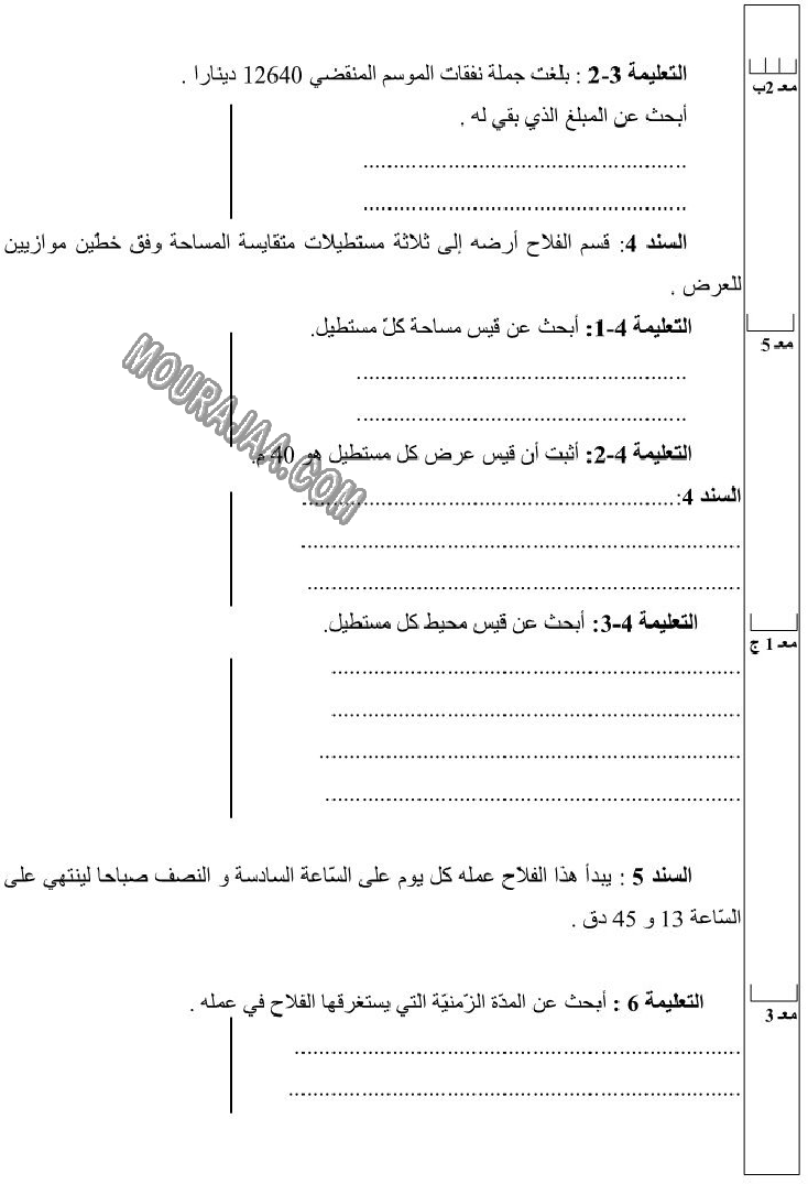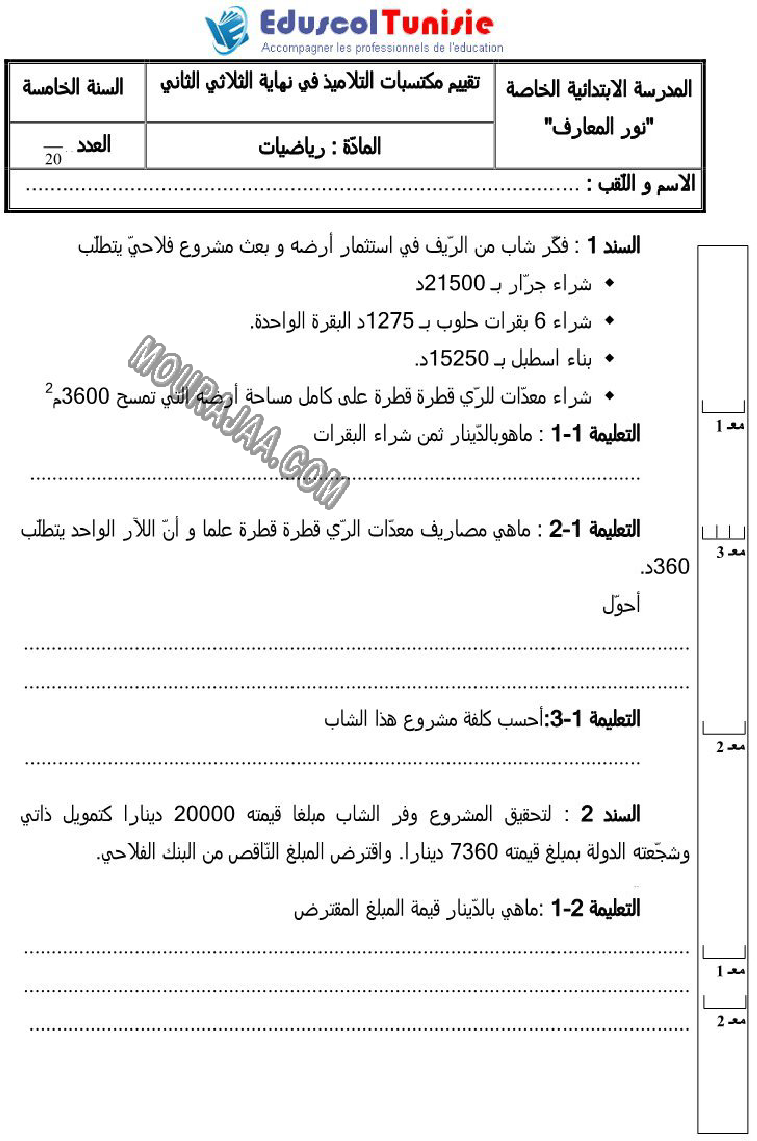 الرياضيات-السنة الخامسة-امتحانات الثلاثي الثاني صفحة 3