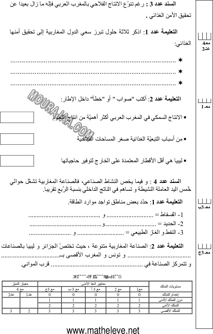 امتحان جغرافيا سنة سادسة ابتدائي الثلاثي الثاني مع الإصلاح