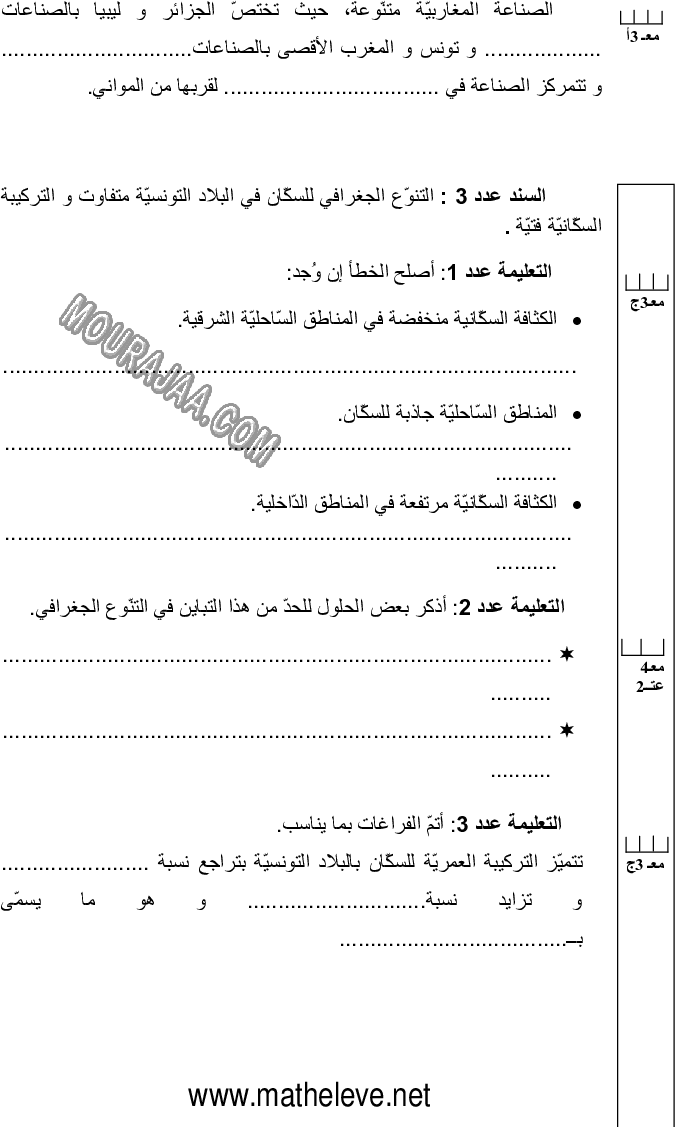امتحان جغرافيا سنة سادسة ابتدائي الثلاثي الثاني مع الإصلاح