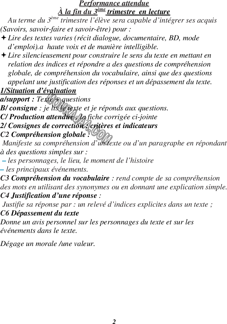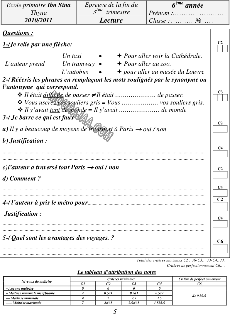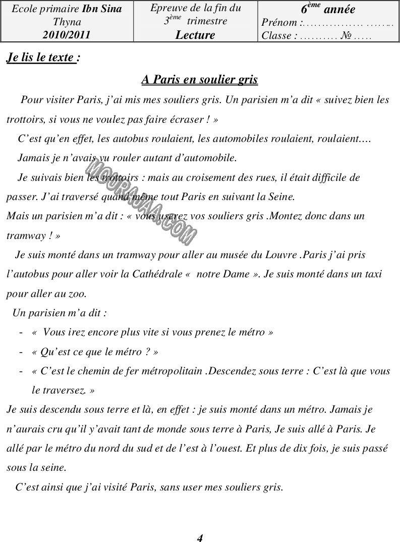 📚 Cet examen est destiné aux élèves de sixieme en Tunisie pour les aider à évaluer leur niveau en lect_fr et bien se préparer aux examens officiels.
