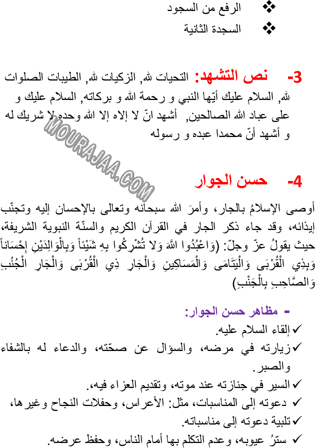درس الصلوات الخمس - مراحل الركعة - نص التشهد - حسن الجوار سنة ثالثة ابتدائي ابتدائي pdf