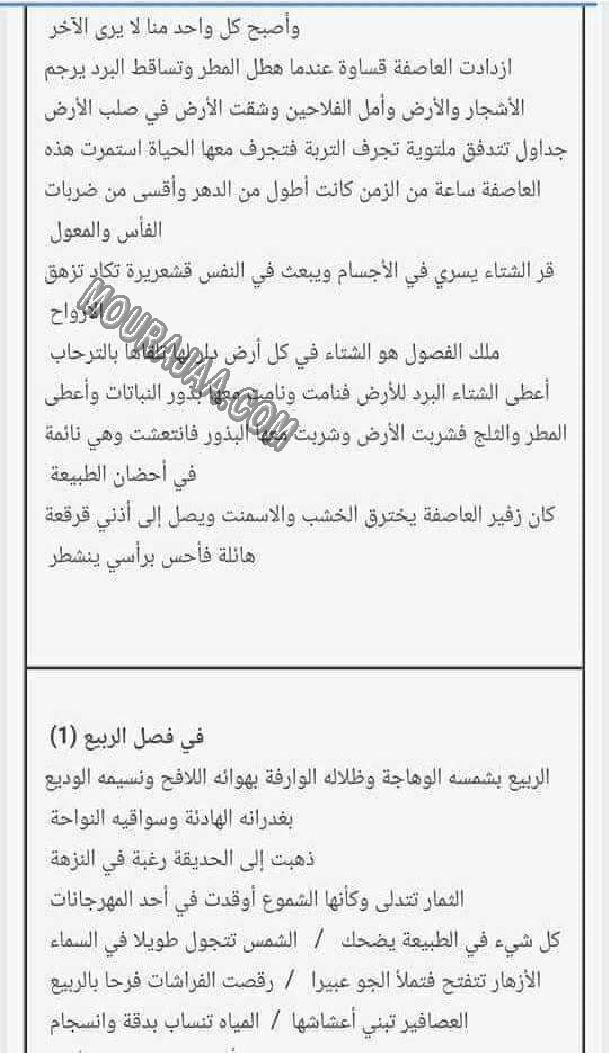 • موضوع إنتاج كتابي حول انتاج كتابي الفصول