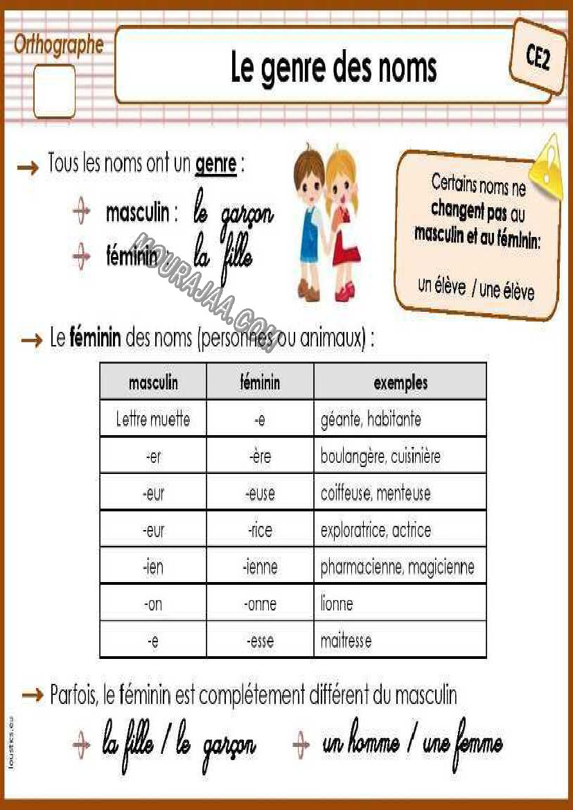 Leçon genre de nom troisieme primaire PDF