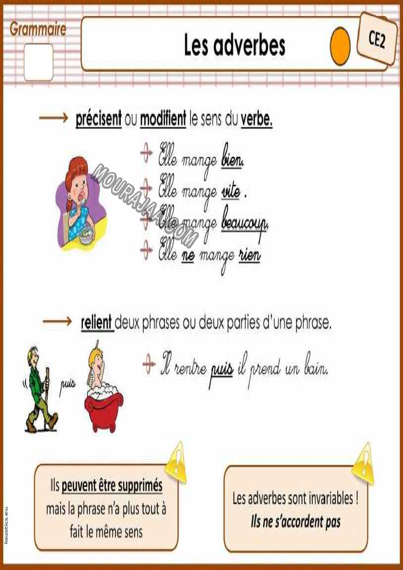 Télécharger la leçon les adverbes en lect_fr, destinée aux élèves de troisieme de l’enseignement primaire en Tunisie, avec une explication simple et claire.