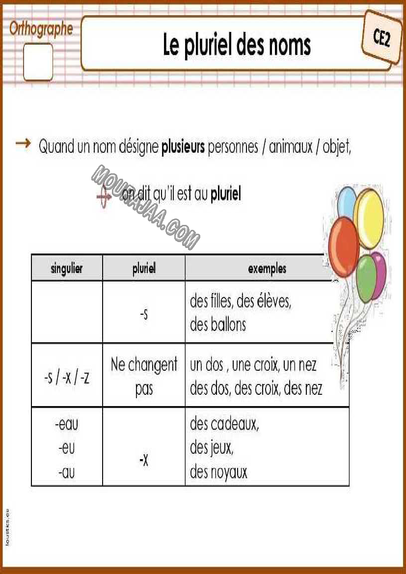 Télécharger la leçon pluriel des nom en lect_fr, destinée aux élèves de troisieme de l’enseignement primaire en Tunisie, avec une explication simple et claire.