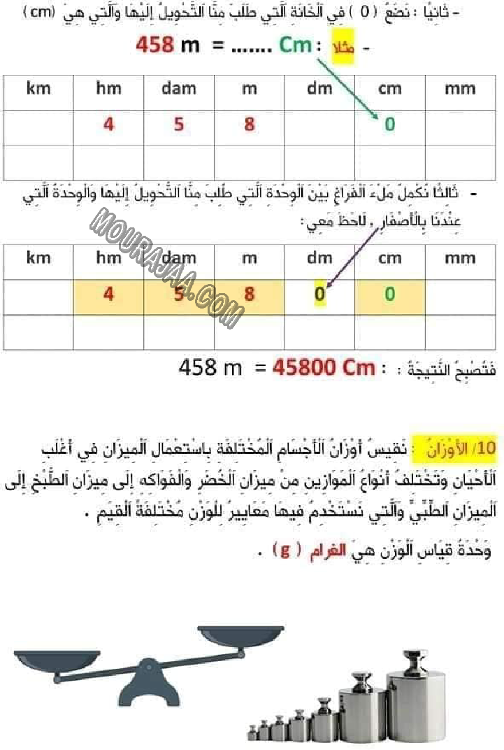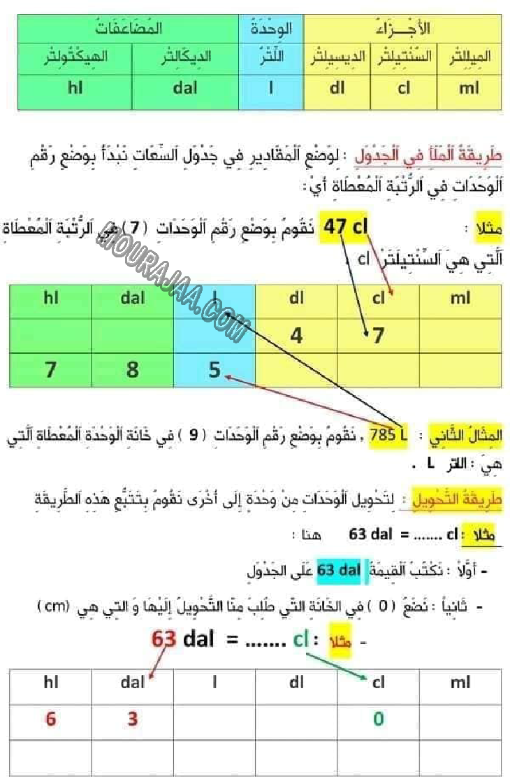 درس قراءة الاعداد - جدول الاعداد - الاوزان - الساعات - جدول الضرب سنة ثالثة ابتدائي ابتدائي pdf