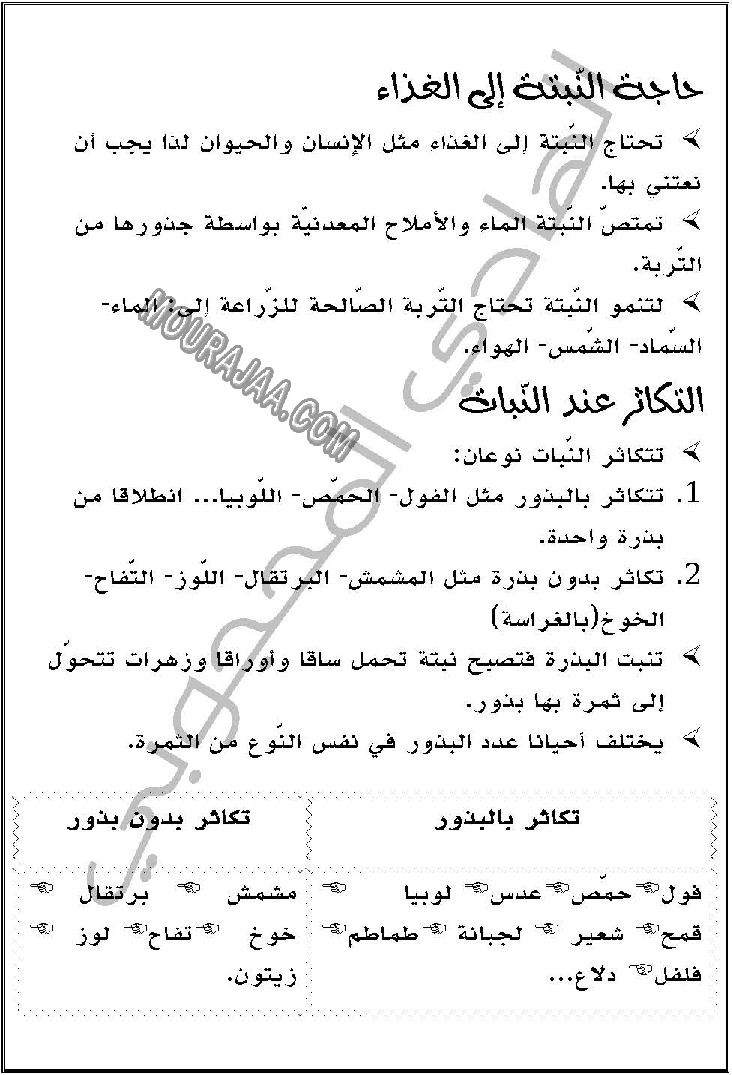 درس حاجة النبتة الى الغذاء سنة ثالثة ابتدائي ابتدائي pdf
