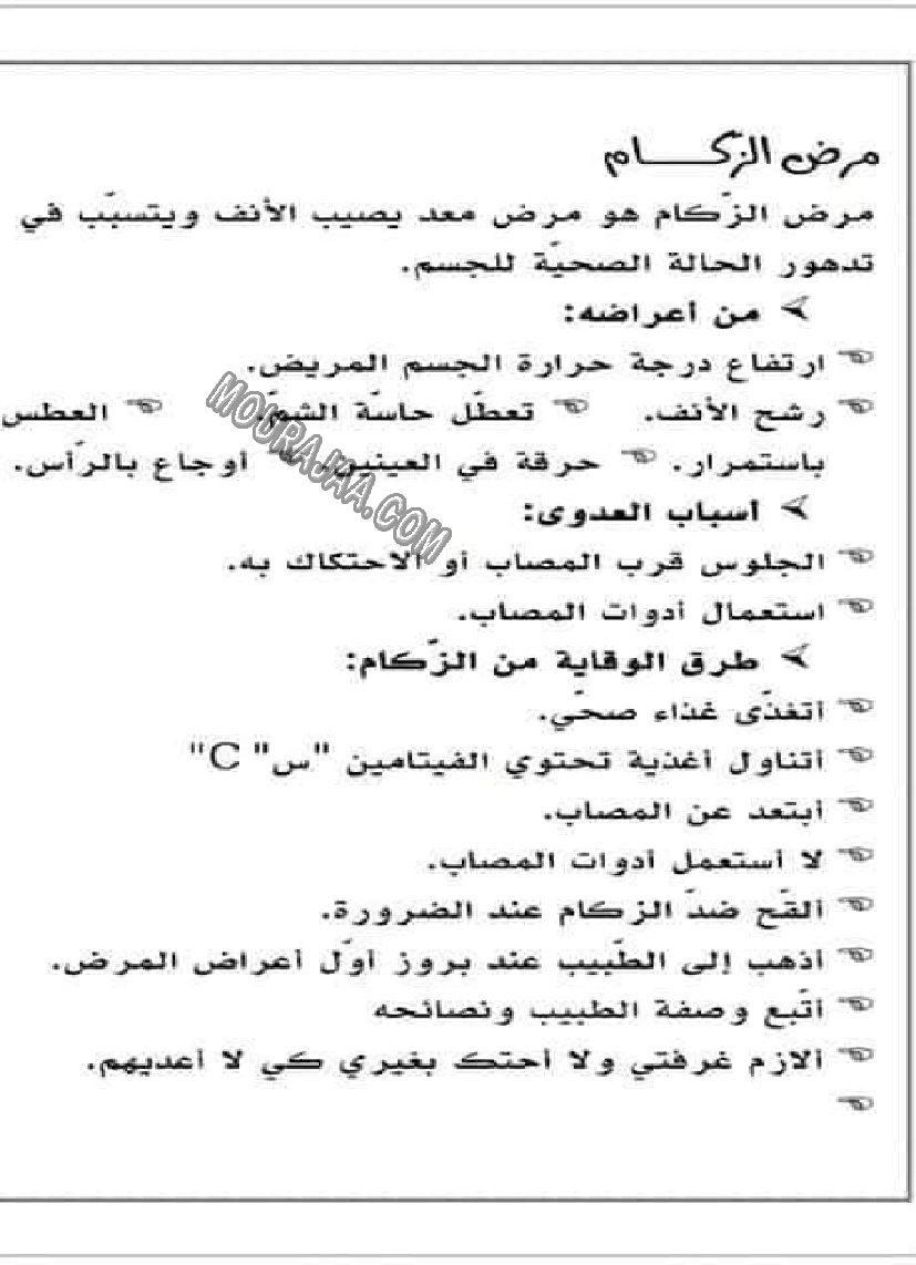 درس مرض الزكام سنة ثالثة ابتدائي ابتدائي pdf