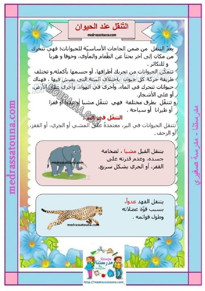 📚 هذا البحث مخصص لتلاميذ التعليم الابتدائي لمساعدتهم على إنجاز بحوث مدرسية حول التنقل عند الانسان و الحيوان بطريقة مبسطة ومنظمة.
