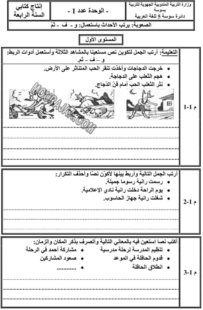 تحميل درس ترتيب الاحداث في مادة انتاج كتابي موجه لتلاميذ سنة رابعة ابتدائي من التعليم الابتدائي بتونس، مع شرح مبسط يساعد على الفهم السريع ويعتمد على المنهج التونسي.