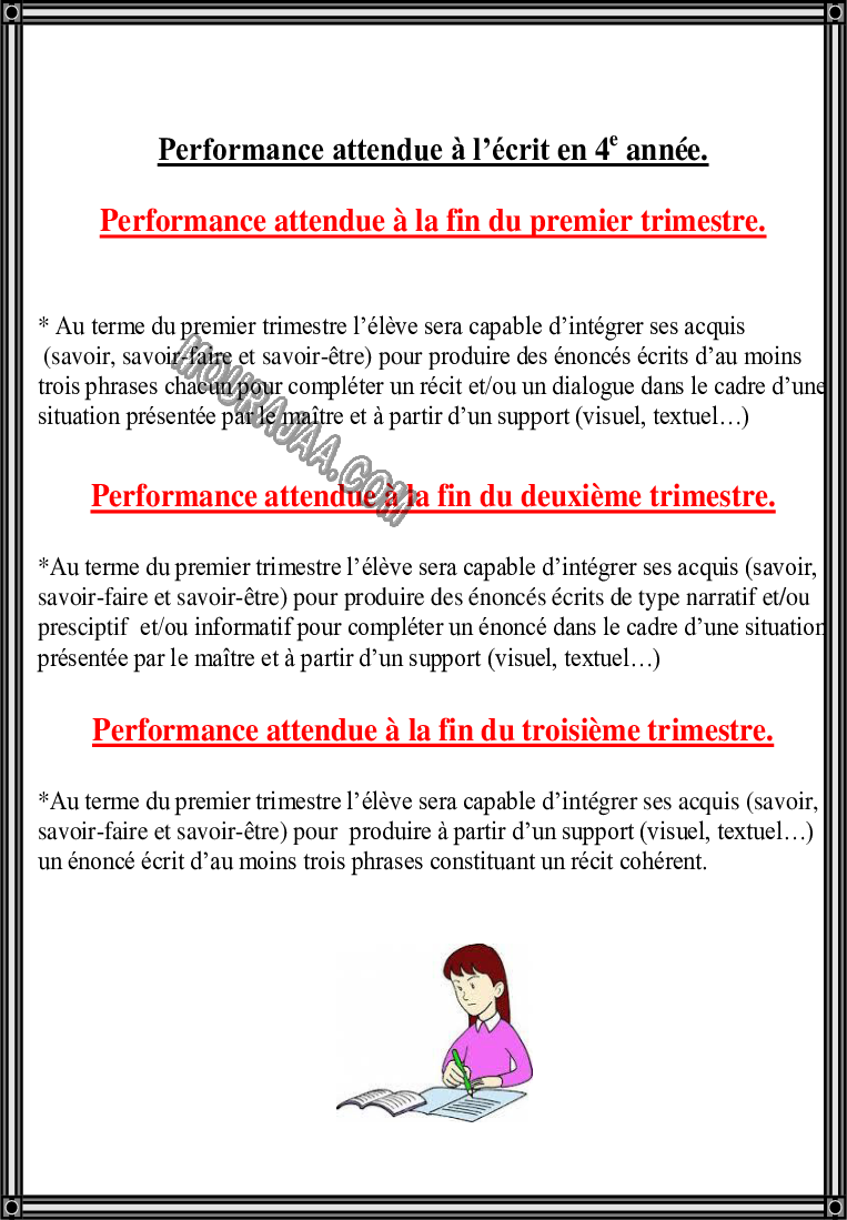 Leçon Entrainement-du-projet-décriture quatrieme primaire PDF