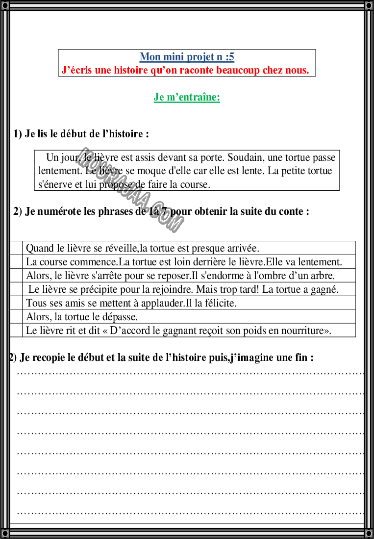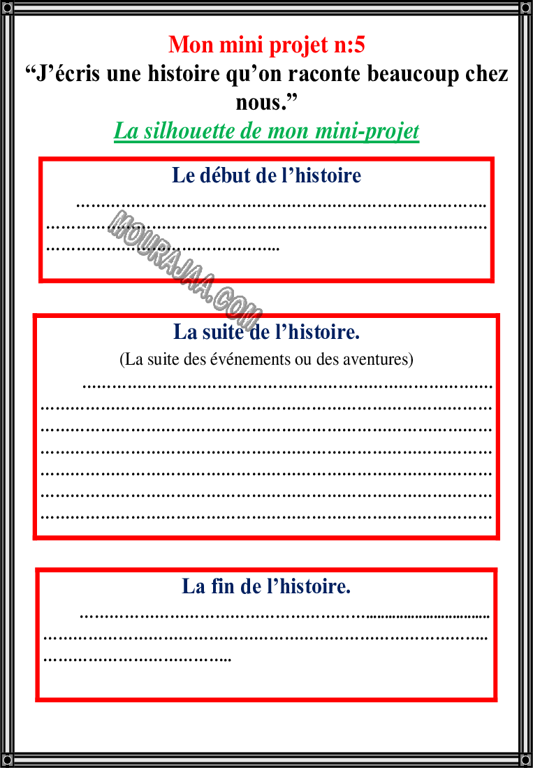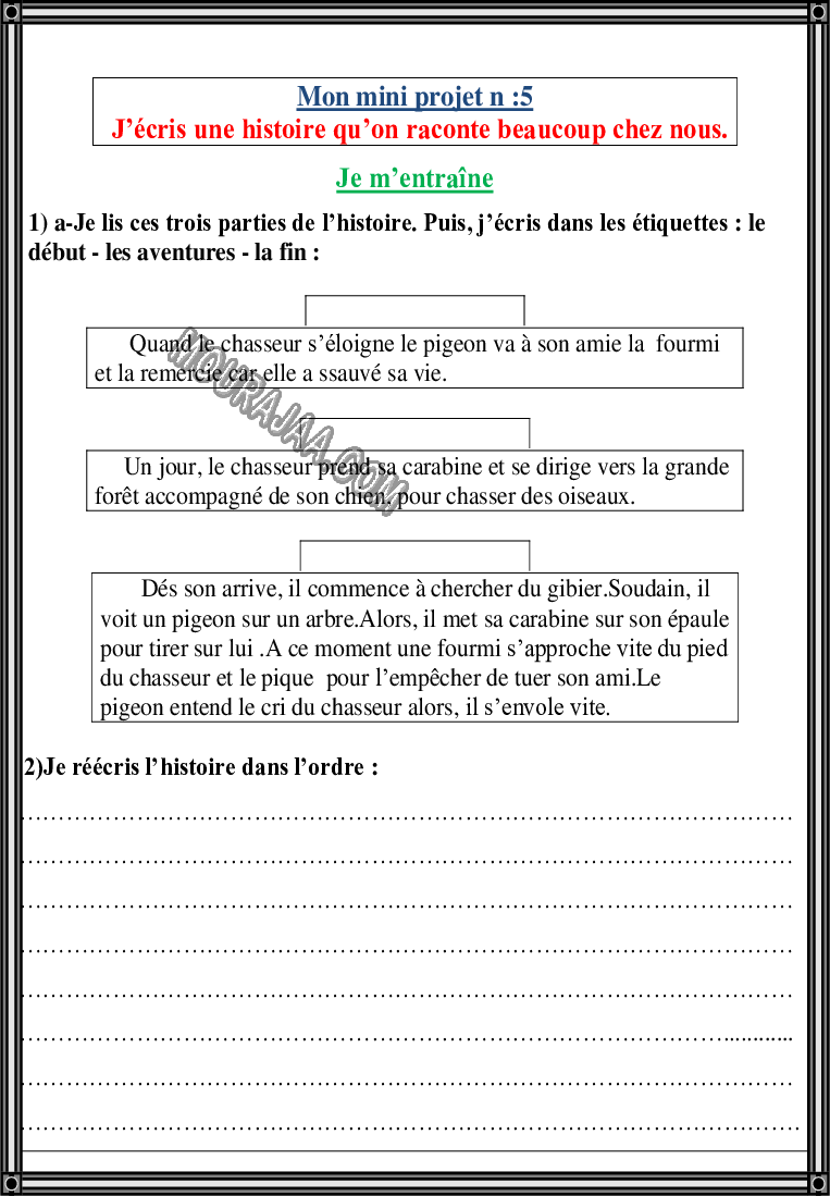 Télécharger la leçon Entrainement-du-projet-décriture en exp_fr, destinée aux élèves de quatrieme de l’enseignement primaire en Tunisie, avec une explication simple et claire.