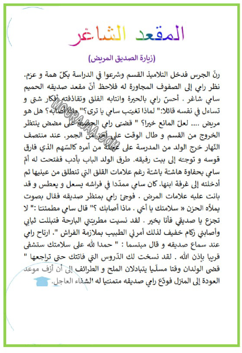 • موضوع إنتاج كتابي حول زيارة الصديق المريض