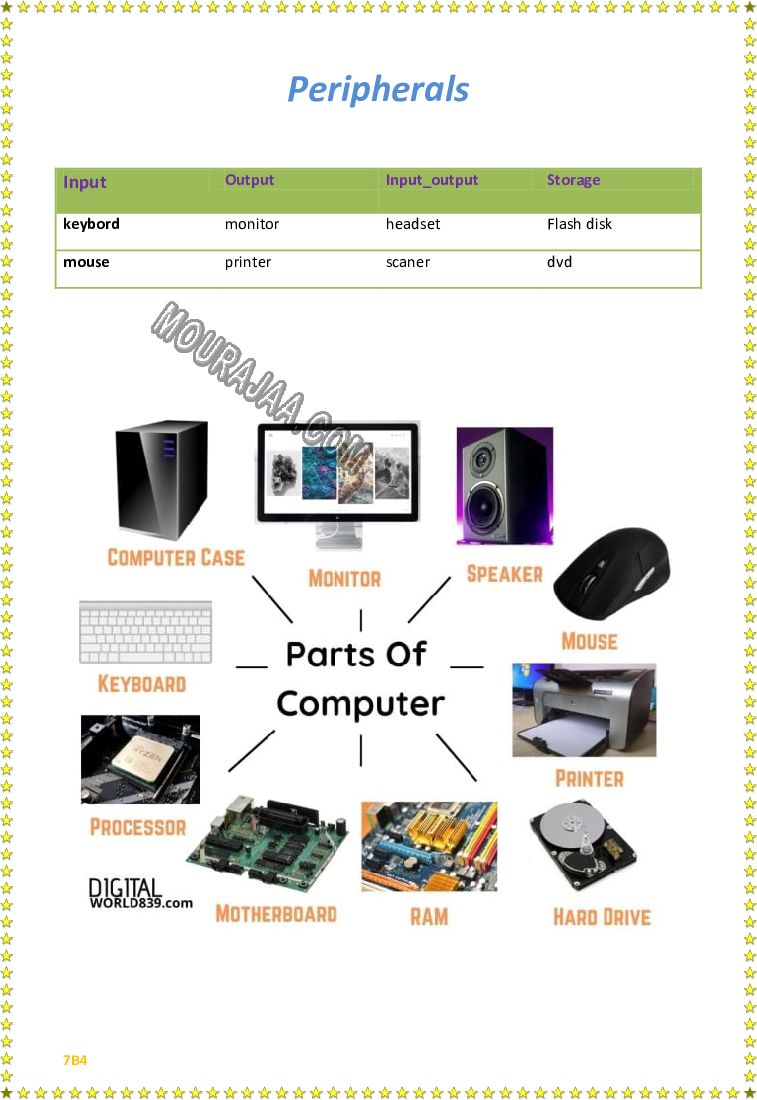 Télécharger une recherche sur Peripherals destinée aux élèves de sixieme, conforme au programme tunisien 2026, prête à l'utilisation scolaire.