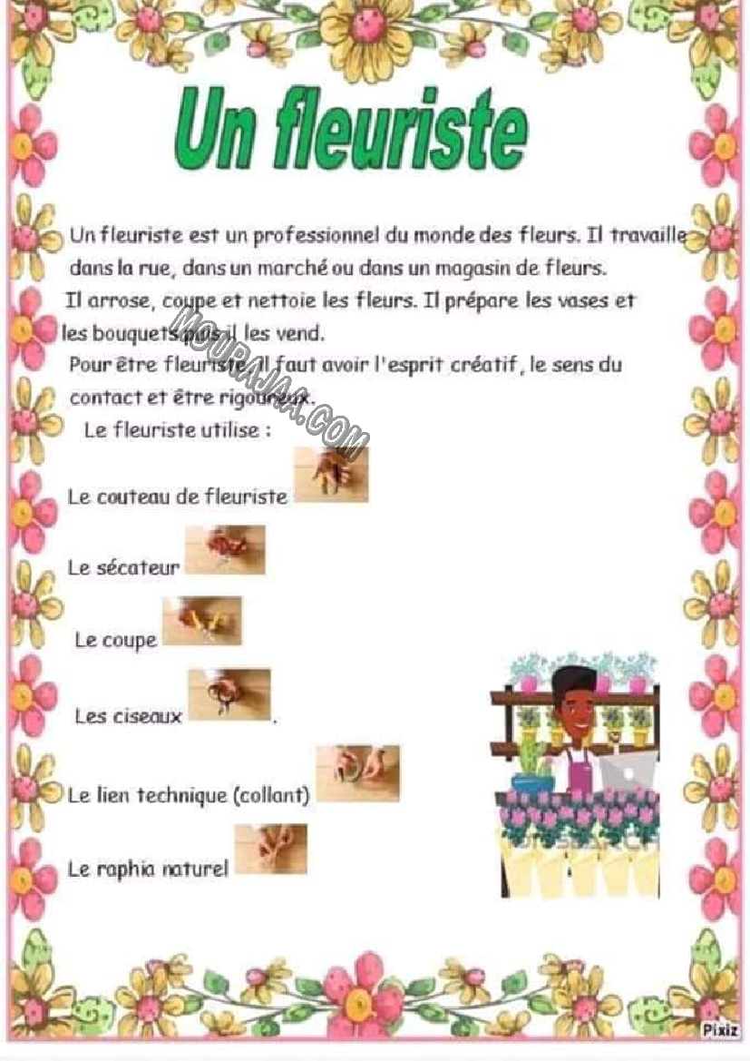 Télécharger une expression écrite sur le thème fleuriste, destinée aux élèves de sixieme de l’enseignement primaire en Tunisie.