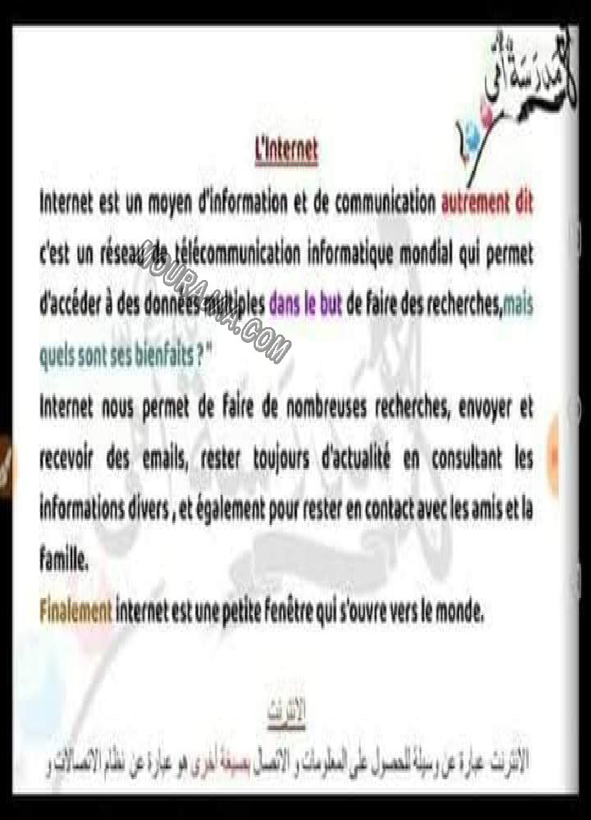 Télécharger une expression écrite sur le thème internet, destinée aux élèves de sixieme de l’enseignement primaire en Tunisie.