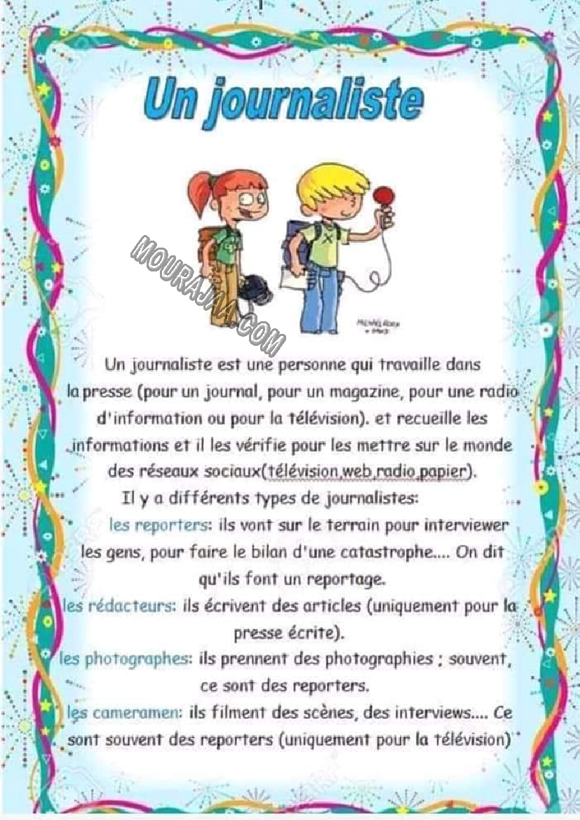 Télécharger une expression écrite sur le thème journaliste, destinée aux élèves de sixieme de l’enseignement primaire en Tunisie.