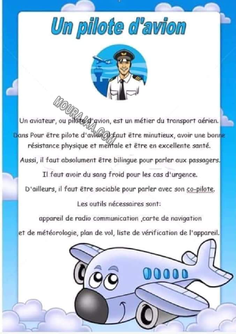 Télécharger une expression écrite sur le thème pilote d avion, destinée aux élèves de sixieme de l’enseignement primaire en Tunisie.