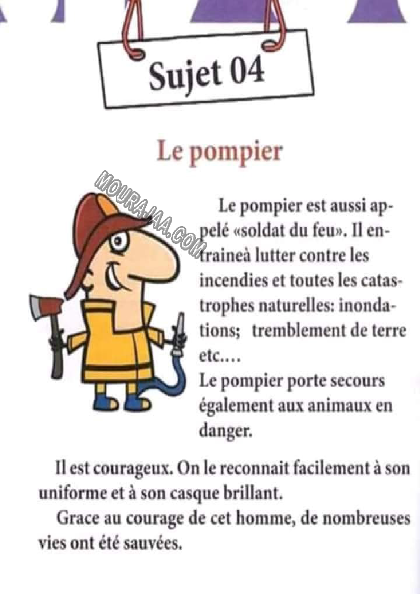 Télécharger une expression écrite sur le thème pompier, destinée aux élèves de sixieme de l’enseignement primaire en Tunisie.