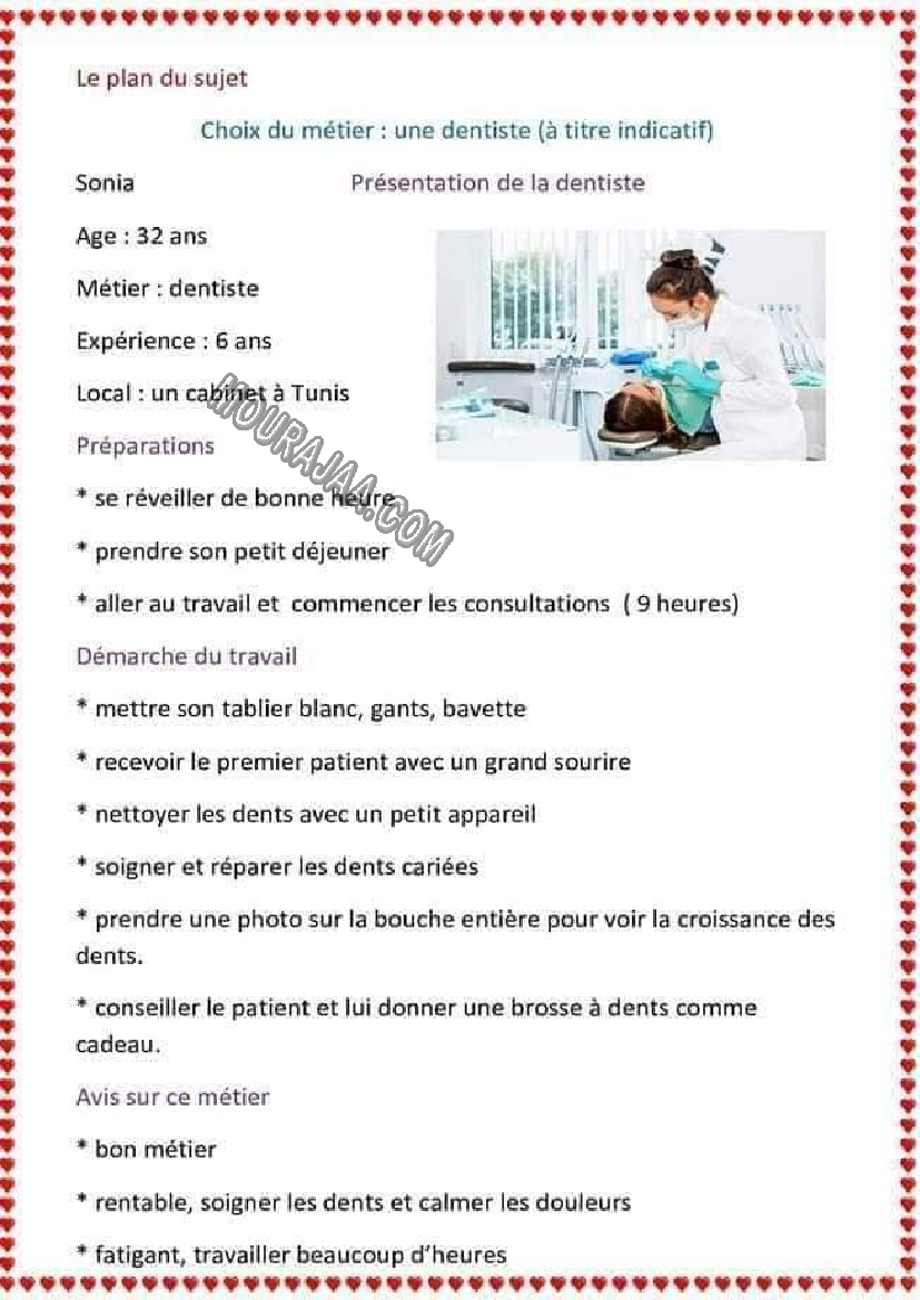 Télécharger une expression écrite sur le thème presentation de la dentiste, destinée aux élèves de sixieme de l’enseignement primaire en Tunisie.