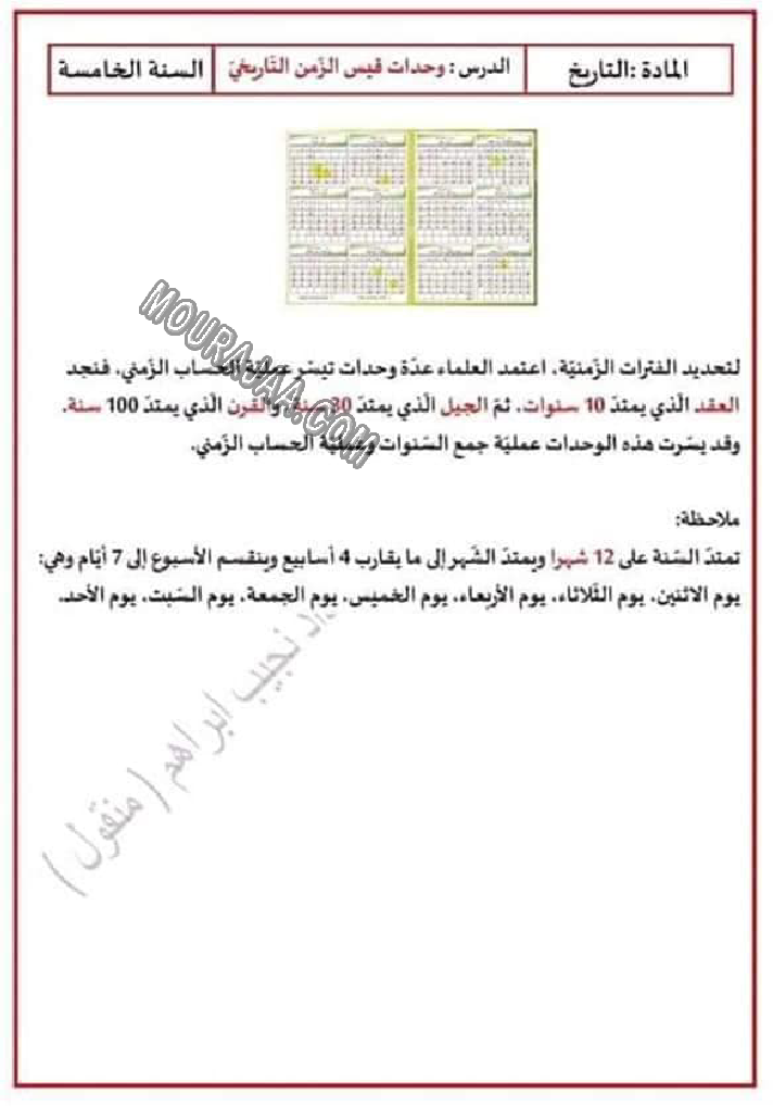 تحميل درس وحدات قيس الزمان في مادة تاريخ موجه لتلاميذ سنة خامسة ابتدائي من التعليم الابتدائي بتونس، مع شرح مبسط يساعد على الفهم السريع ويعتمد على المنهج التونسي.