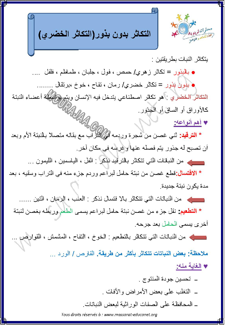 درس التكاثر مع البذور سنة رابعة ابتدائي ابتدائي pdf