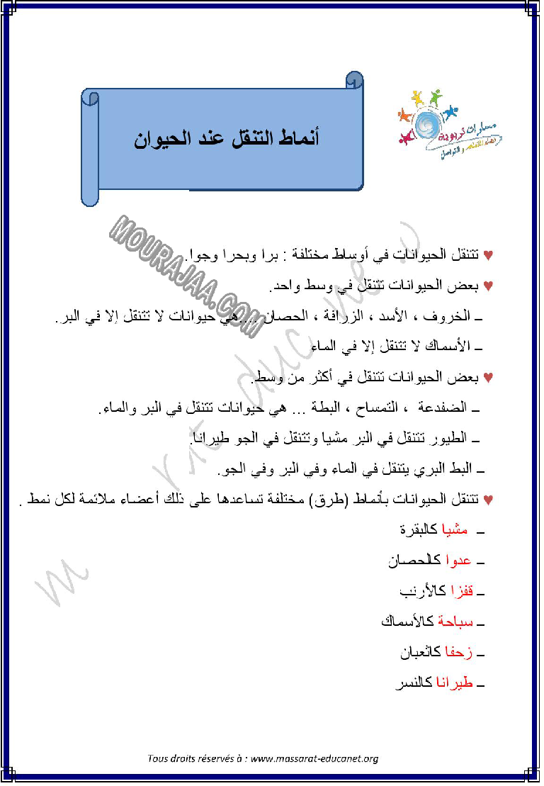 📚 هذا الدرس مخصص لتلاميذ التعليم الابتدائي لمساعدتهم على فهم درس انماط التنقل عند الحيوان في مادة ايقاظ علمي بطريقة سهلة ومنظمة.