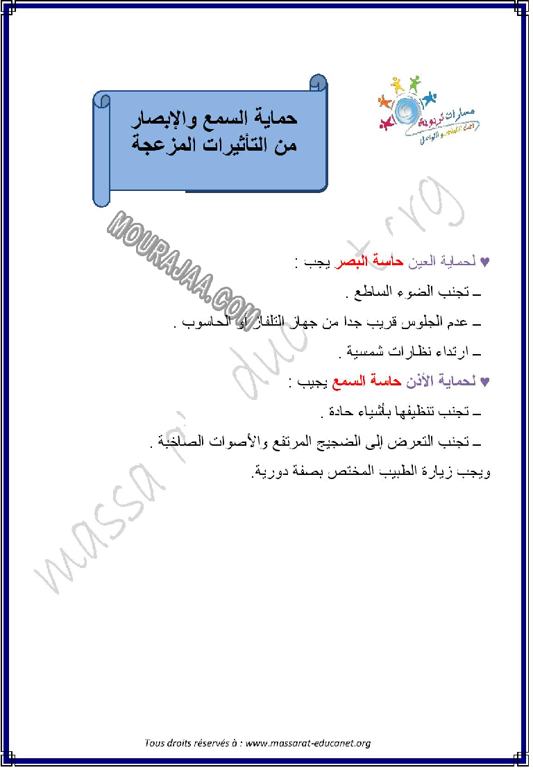 • شرح مبسط وواضح لدرس حماية السمع و الابصار