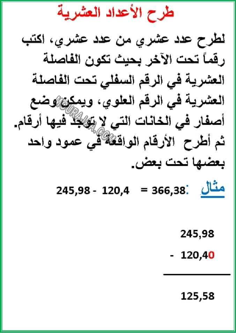• شرح مبسط وواضح لدرس طرح الاعداد العشرية