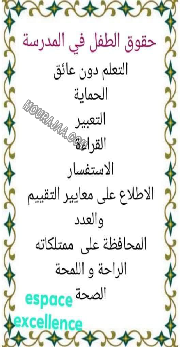 📚 هذا البحث مخصص لتلاميذ التعليم الابتدائي لمساعدتهم على إنجاز بحوث مدرسية حول حقوق و واجبات الطفل بطريقة مبسطة ومنظمة.
