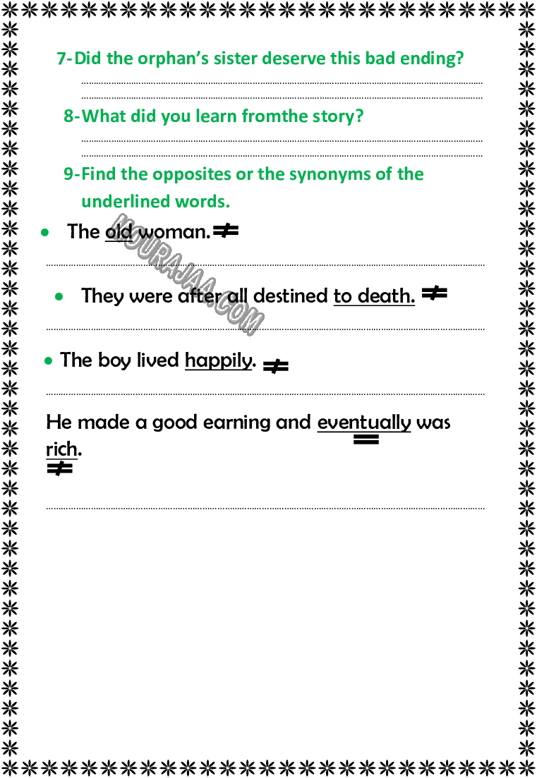Télécharger une expression écrite sur le thème the orphon boy, destinée aux élèves de sixieme de l’enseignement primaire en Tunisie.