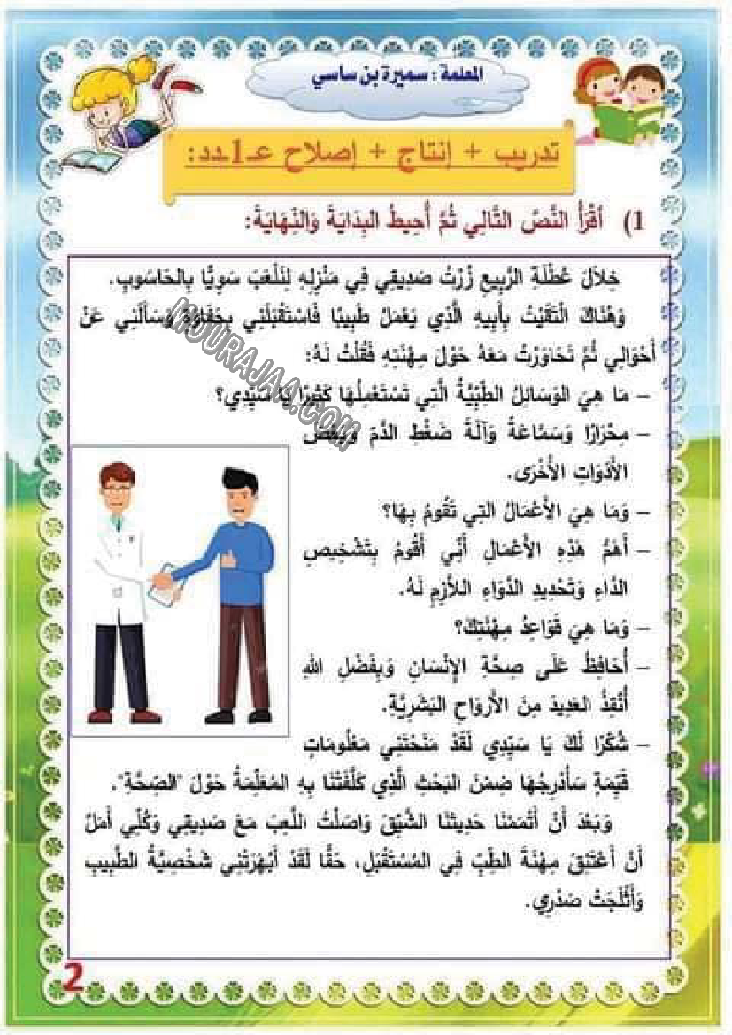 إنتاج كتابي حول درس الصحة سنة ثالثة ابتدائي ابتدائي pdf