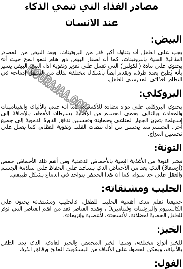• تعريف مبسط حول مصادر الغذاء التي تنمي الذكاء