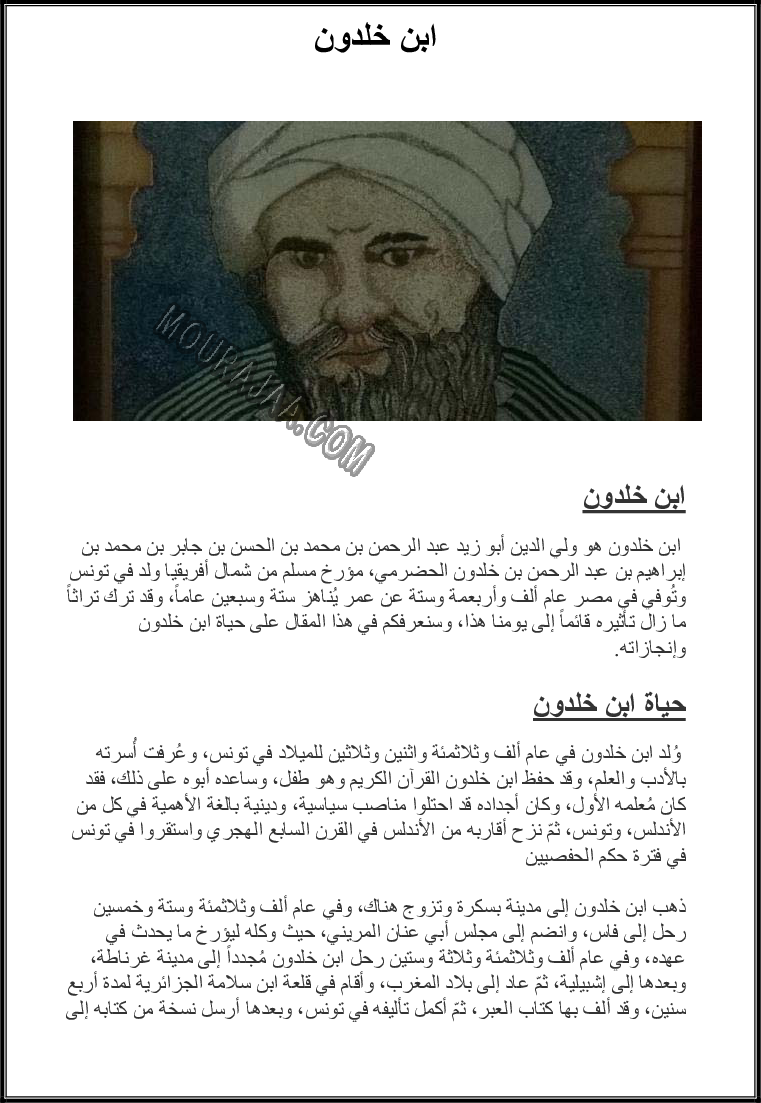 بحث حول ابن خلدون سنة سادسة ابتدائي pdf