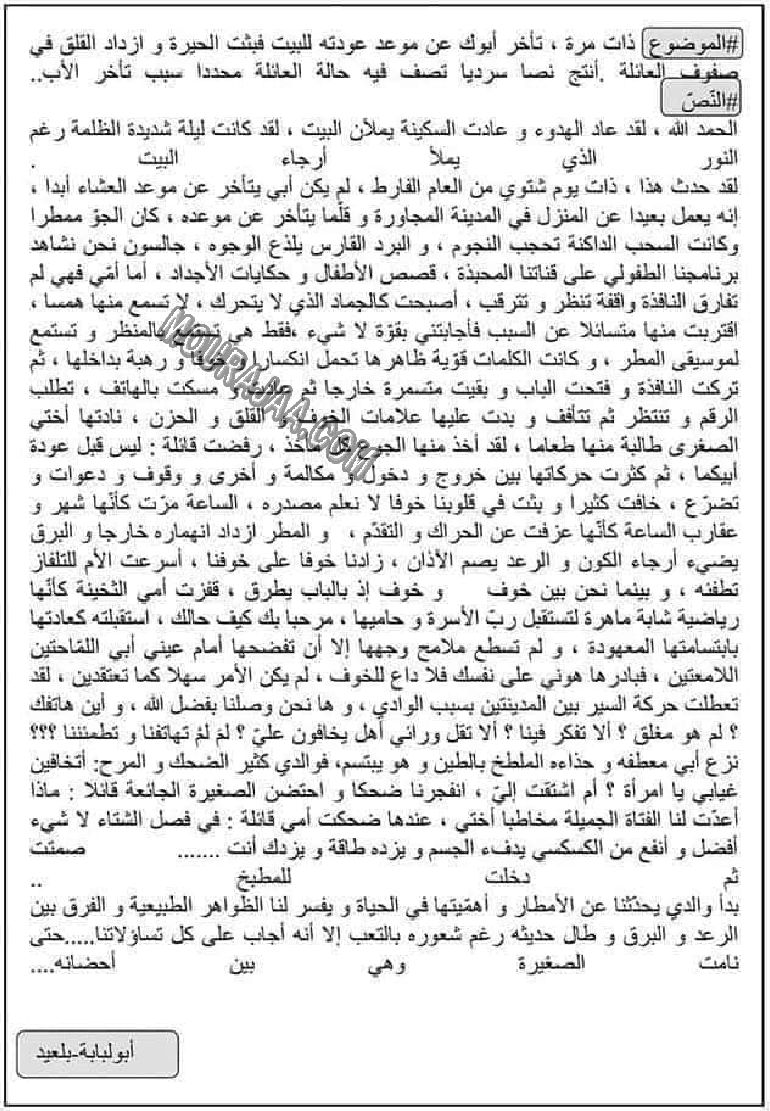 • موضوع إنتاج كتابي حول حيرة العائلة
