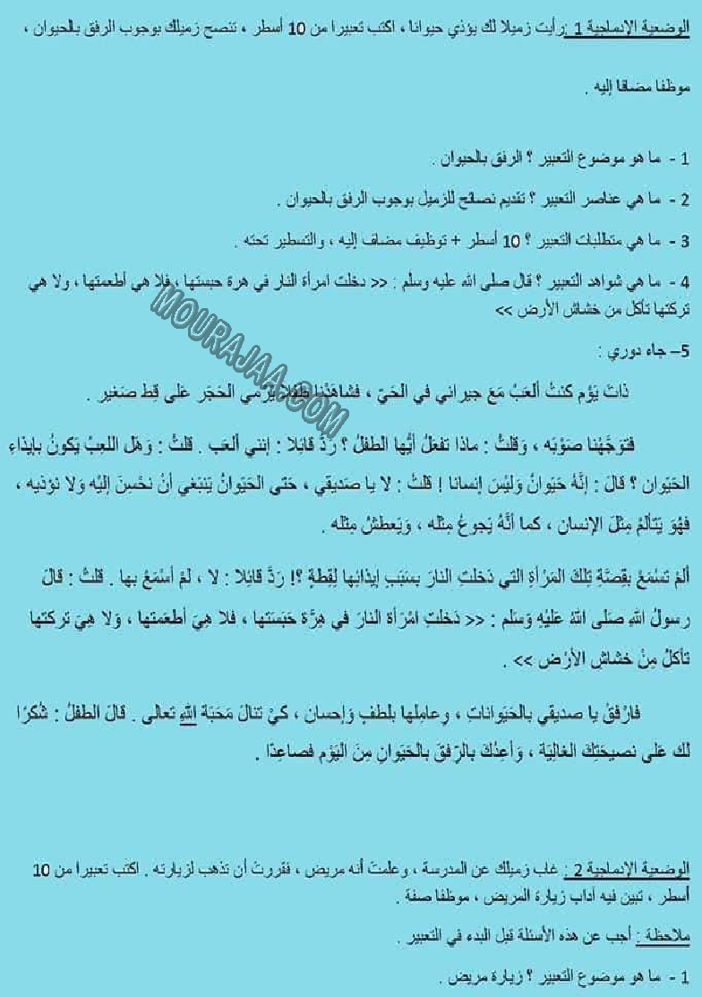 • موضوع إنتاج كتابي حول الرفق بالحيوان
